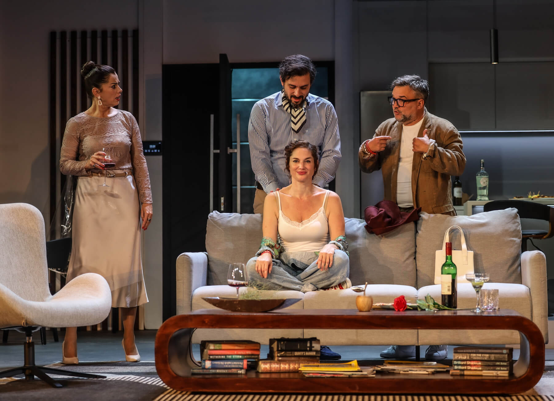 A drámaíró szerepében Hevér Gábort láthatja majd a közönség, politológus feleségét Parti Nóra játssza, Balla Eszter pedig az oltárnál elhagyott menyasszonyként lép színre. Richardot, a jó családba született producert, azaz a „klasszikus Páriszt” Szabó Kimmel Tamás alakítja, míg Jake előző partnereként – az „örök hetéraként” – Martinovics Dorina lép színpadra, aki váltig állítja, hogy jelenlegi férje megpróbálta őt megölni.
